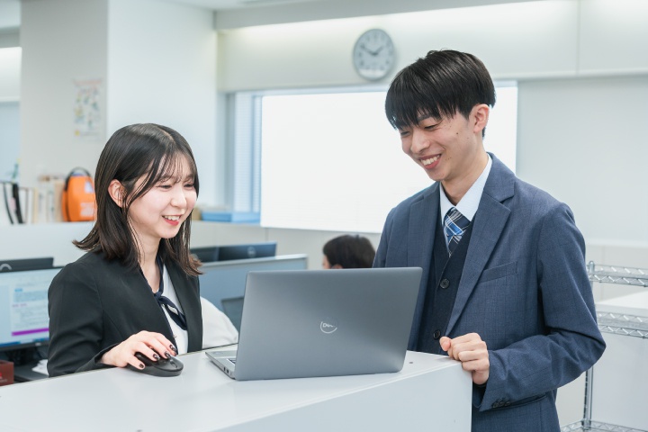 「わからないことは何回でも聞いていいよ」とリーダーや上司が声をかけてくれる温かい社風も、当社の特徴だと思います。廊下ですれ違った他部署の方まで気さくに話しかけてくれるほど、風通しが良いんです。質問や相談がしやすい環境だからこそ、未経験の業務でも安心して知識を吸収し、自然と成長できていると感じます。